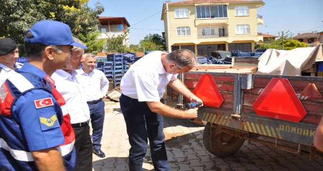 Orhaniye köyündeki törende konuşan İlçe Jandarma Trafik Tim Komutanı Astsubay Üstçavuş Bahattin Demez, Emniyet Müdürlüğü verilerine göre merkez ve köylerde tescilli 4 bin 970 adet traktör mevcut. Trafik tim komutanlığı sorumlulk bölgesinde yaşanan zirai hareketlilik sebebiyle meydana gelen trafik kazaları incelendiğinde, kazaların bir çoğunun traktör römorklarının ışıklarının noksan ve bozuk olmasından kaynaklandığı görülmekte. Traktör römorklarının arka kapak kısmına kanunen işaret levhası takılması gerekmektedir. Bu proje ile traktör sürücülerinin römorklarına kendileri için hayatî önem taşıyan reflektör takmalarını sağlamak, traktör sürücülerinin karıştıkları kazaları asgariye indirmek hedeflenmekte. Traktör sürücülerine trafik kurallarının tekrar hatırlatılması, kullandıkları römorklara reflektör takmalarının önemi anlatılacak dedi.