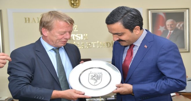 Kardeş şehir protokolü için Kırşehire gelen Remscheid heyeti, Kırşehir Belediye Bakanı Yaşar Bahçeciyi makamında ziyaret etti.
