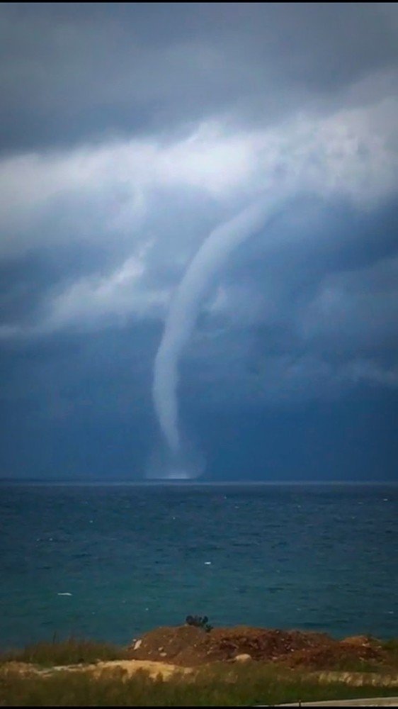 Rizenin Fındıklı İlçesi Açıklarında Denizde Bir Anda Ortaya Çıkan Hortum Korkuttu