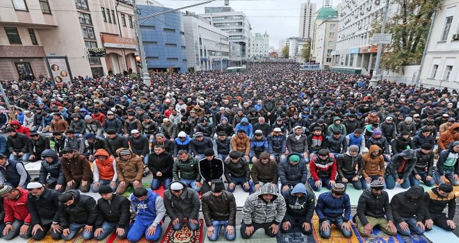 Rusyada yaşayan Müslümanlar Rusyanın Başkenti Moskovada bulunan Kurban Bayramı namazına yetişebilmek için Merkez Camiine akın etti. Moskovada Prospekt Mira Caddesinde bulunan ve Cumhurbaşkanı Recep Tayyip Erdoğanın da açılış törenine katıldığı camiye akın eden Müslümanlar camide boş yer kalmayınca caddelere taştı. Müslümanlar camilere ulaşmak için toplu taşıma araçlarını kullandı. Prospekt Mira Caddesi dahil birçok sokakta Müslümanlar yanlarında getirdikleri seccadelerle namaz kıldı. Rus polisin yoğun güvenlik önlemleri aldığı cadde boyunca Müslümanlar adım atacak yer bırakmadı. Bayram namazını Rusya Genel Müftüsü Ravil Gaynutdin kıldırdı.
