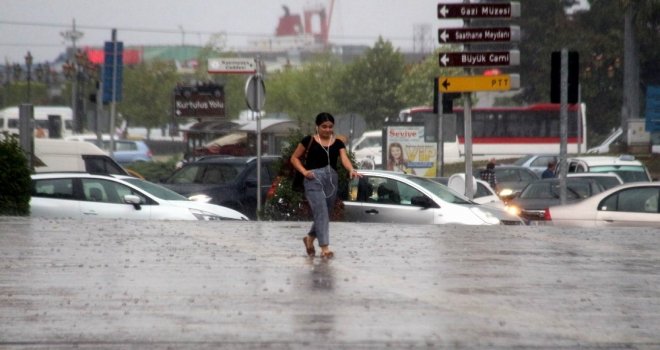 Samsundaki Sağanak Yağış Hayatı Olumsuz Etkiledi