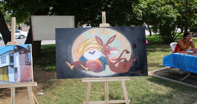 Konyanın Akşehir ilçesinde, 59. Uluslararası Akşehir Nasreddin Hoca Şenliği kapsamında Gülmece Parkında atölye çalışmaları yapan Sanata Saygı Platformu üyelerinin yapmış olduğu 6 günlük performanslarının sergi açılışı yapıldı.