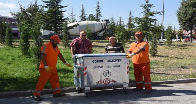 Belediye Başkanı Zeki Gül, Çorum Sanayi Sitesinde eskiyen çöp varillerinin yeni çöp konteynerleri ile değiştirileceğini belirtti.