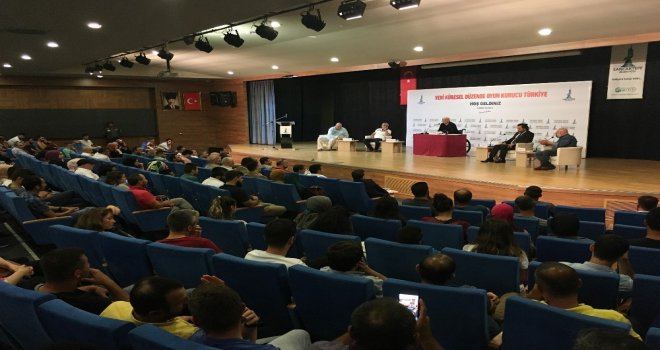 Yaklaşık 4 saat süren konferansın Moderatörlüğünü Erhan Özyiğit yaptı. Konferansa konuşmacı olarak katılan 24 TV Genel Yayın Yönetmeni Murat Çiçek, gündeme dair değerlendirmelerde bulunarak,“Şuan da içeriyi halledikten sonra dışarıya çıkıp bir şeyleri yapabilmeniz gerekiyor. Türkiye bunun ikisini aynı anda yapmak zorunda kaldı. Bir taraftan içeriyi düzeltirken öbür taraftan kazanımlarını korumak için mücadele etmeye başladı. Siz oyun kurucu olmaya çalışırken bütün dünya ile mücadele ederken içeride bir gazeteci bir tweet atıyor. Bu adam bu ülkede yaşayan, bu ülkenin ekmeğini yiyen bir gazeteci. Doların düşmesini istiyorsanız diyor, sadece Brunson serbest bırakmak yetmez diyor. Demirtaşı serbest bırakacaksın diyor, Enis Berberoğlunu, ODTÜlü öğrencileri serbest bırakacaksınız ancak ondan sonra dolar düşer diyor. İçimizdeki adam bunu söylüyor ama Amerikalı yetkililerin aklına gelmemiştir bu. Bir de bunlarla mücadele ederek oyun kurmaya çalışıyorsunuz” dedi.