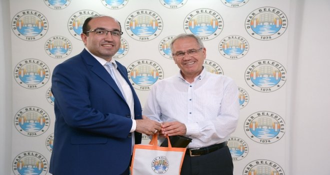 Afyonkarahisarın Sandıklı Belediye Başkanı Mustafa Çöl, Dinar Belediye Başkanı Saffet Acarı makamında ziyaret etti.
