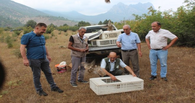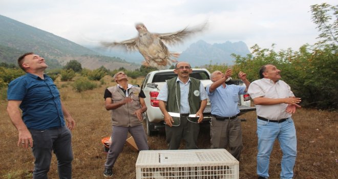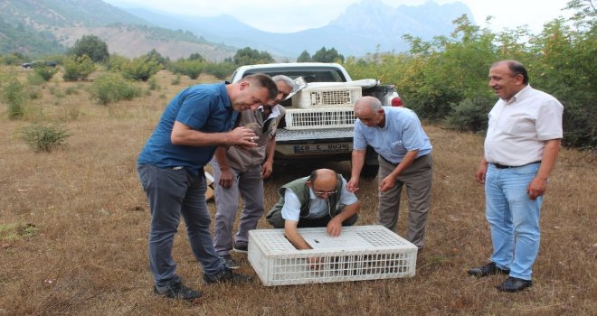 Yaban hayata destek olmak amacıyla yetiştirilen 200 keklik, Sarıcakayada doğaya salınırken bu bölgeye avlanma yasağı getirildi.