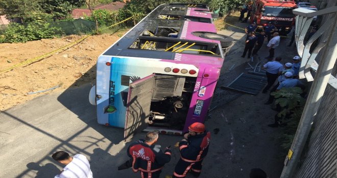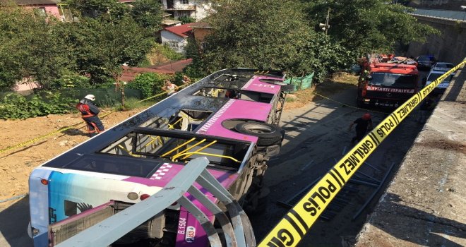 Sarıyerde Toplu Taşıma Otobüsü 5 Metre Yükseklikteki Bariyeri Aşarak Aşağıya Uçtu