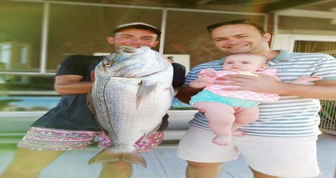 Saros Körfezi Büyükevren Köyü Sahilinde yakalanan 7 aylık bebekten büyük sinarit balığı görenlerin ilgisini çekti.