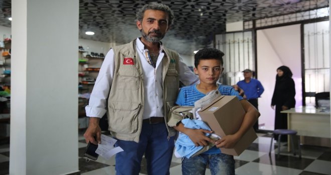 Suriyede mevcut durumun başladığı ilk günden bu yana yardım faaliyetlerini sürdüren İHH İnsani Yardım Vakfı, bu bayramda da çocukları yalnız bırakmadı. Fırat Kalkanı bölgesinde kurmuş olduğumuz elbise giydirme salonlarımızda yaklaşık 20 bin ihtiyaç sahibi kişiler ücretsiz bayram alışverişi yaptı. Fırat Kalkanı bölgesindeki salonlarımız Cerablu, Azez ve Elbab kentlerinde ihtiyaç sahiplerine yardım yaptıklarını ifade eden İHH Kilis Basın Birimi Sorumlusu Yakup Alaca, “öncelikle ihtiyaç sahibi aileleri tespit edip kart dağıtımı gerçekleştiriyor. Bu aileler bu kartlarla salonlarımız uğrayıp istedikleri kıyafetleri ücretsiz alıyorlar. Yardım ulaştırırken insanların rencide olmamasına ve gerçek anlamda ihtiyaçlarının giderilmesine dikkat ediyoruz. Bu nedenle ihtiyaç sahiplerinin giyecekleri ürünleri kendilerinin seçebilecekleri bir sistem oluşturduk. Proje bölge insanı tarafından yoğun ilgi görüyor” diye konuştu.