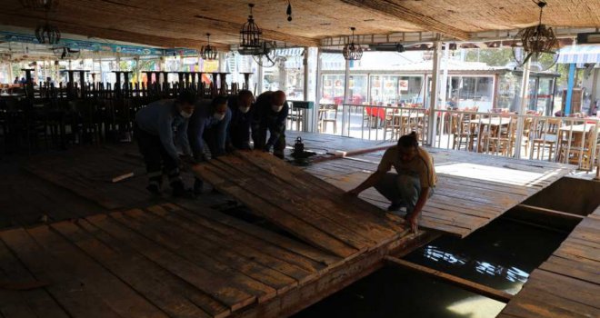 İzmir Büyükşehir Belediyesi 6,9 büyüklüğündeki Ege depreminin ardından Seferihisar Sığacık’ta meydana gelen tsunaminin zarar verdiği balık hali ve balıkçılar çarşısında çalışmalarını sürdürüyor. Ahşap kaplamaları tamamen zarar gören çarşı, İzmir Büyükşehir Belediyesi ekiplerince yenileniyor. Çarşının içinde parke taşlarının zarar gördüğü yerler de belirlendi. Ekipler yolların bozulan noktalarını, parke taşı döşeyerek yeniledi.