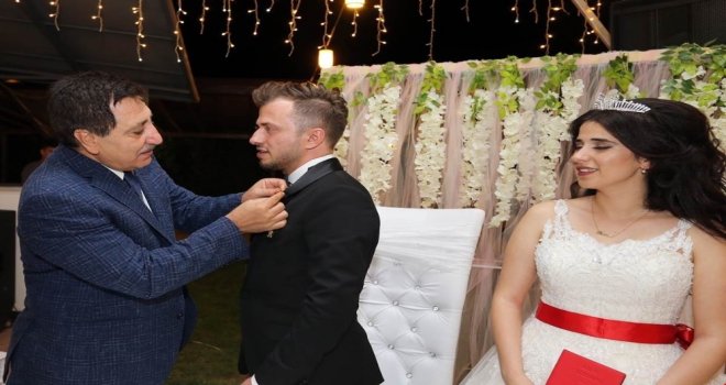 Bursa Valisi İzzettin Küçük, 2016 yılında Hakkari Çukurcada şehit olan Piyade Uzman Çavuş Yavuz Metenin kız kardeşi Merve Mete ve Engin Albayrakın İnegöldegerçekleştirilen düğün törenine katıldı.