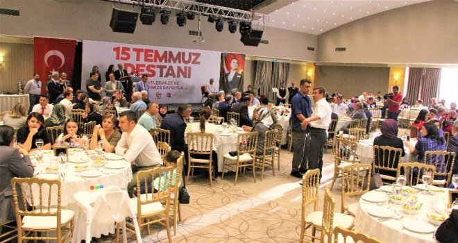 Bir otelde gerçekleştirilen programa; Vali Vekili Bekir Şahin Tütüncü ve eşi Hikmet Tütüncü, vali yardımcıları, kaymakamlar, askeri erkan, kamu kurum müdürleri, sivil toplum kuruluşlarının temsilcileri, şehit aileleri ve gaziler katıldı. Eskişehir Valiliğinin himayesinde, ‘15 Temmuz Şehitlerini Anma, Demokrasi ve Milli Birlik Günü münasebetiyle düzenlenen yemekte, şehit aileleri ve gazilerle birlikte olmaktan duyduğu onuru ifade eden Vali Vekili Tütüncü, program esnasında bir konuşma yaptı. Yarın gerçekleştirilecek Demokrasi Mitingine herkesi davet eden Tütüncü, Bu toprakları kanlarıyla, canlarıyla bize vatan kılan, ilelebet bağımsız ve başı dik olarak yaşamamızı sağlayan şehitlerimizin aileleri ve gazilerimiz. Davetimize icabet edip teşrifte bulunduğunuz için; birliğimize, beraberliğimize, kardeşlik ahdimize anlamlı katkılar sunduğunuz için hepinize şükranlarımı sunuyorum. Hepiniz hoş geldiniz, sefalar getirdiniz. Yarın, tarihimizin en büyük, en sinsi, en organize ve en kanlı darbe girişiminin ikinci yıl dönümünü idrak edeceğiz. Fetullahçı Terör Örgütü (FETÖ/PDY) eliyle tertiplenen o karanlık geceyi; 251 şehit, 2 bin 193 gazi vermek pahasına aydınlık bir sabaha ulaştırarak, tarihi destanlarla dolu bu kutlu millete yepyeni bir destan armağan eden o diriliş destanının şanlı kahramanlarını anacağız. Canla, kanla yazılan bu destan hiç unutulmasın; çocuklarımıza, torunlarımıza, torunlarımızın çocuklarına kalsın ve kuşaktan kuşağa aktarılsın diye var gücümüzle gayret göstereceğiz. İnşallah yarın gece bizler de darbelere, vesayet odaklarına karşı olan; demokrasiden, milli birlik ve beraberlikten yana olan milyonlarca vatandaşımız gibi elimizdeki ay yıldızlı bayraklarımızla meydanlardaki yerimizi alacağız ve dost - düşmana bu ülkenin, bu milletin ne kadar birlik ve beraberlik içinde olduğunu, ne kadar büyük millet olduğunu bir kez daha göstereceğiz. Bu vesileyle başta sizler olmak üzere tüm Eskişehirli hemşehrilerimizi yarın akşam saat 20.00de Valilik Meydanında tertip edilecek 15 Temmuz Özel Programına davet ediyorum dedi.