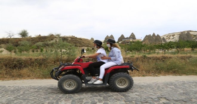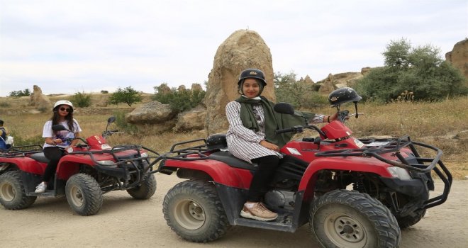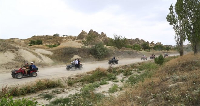 Kapadokya bölgesinin tarihi ve turistik mekanlarını ziyaret etmeyi sürdüren 15 Temmuz Şehitlerinin çocukları için Nevşehirin merkez ilçeye bağlı Göreme beldesinde ATV motorları ile vadi turu düzenlendi.