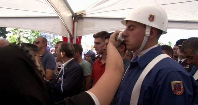Batmanda bölücü terör örgütü mensupları ile çıkan çatışmada şehit düşen Jandarma Uzman Onbaşı Adem Güveni(25) memleketi Samsunda on binler son yolculuğuna uğurladı. Cenazede şehit yakınları, tabutunun başında nöbet tutan askerlerin terini sildi.