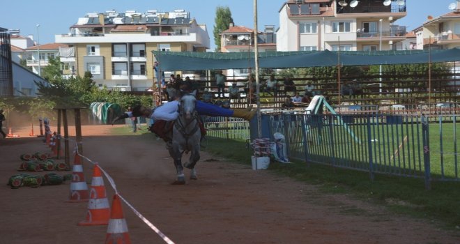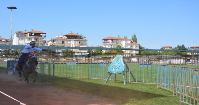 Korkuteli güreşlerinin yapılacağı 100 yıl Atatürk stadyumunda Balıkesir Karesi atlı okçuluk ve savaş sanatları gösteri ekibi bir gösteri sundu.
