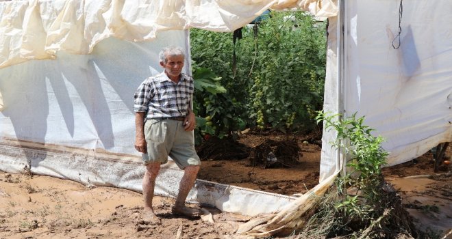 Salur Mahallesinden üretici Nurgül Çavuş, “Yarım saat yağan yağmurun ardından bir anda sel geldi. Serada domates topluyorduk. Hasada yeni başlamıştık. 50 sandık domates toplamıştık. Sel geldi çıktık dışarıya” dedi.