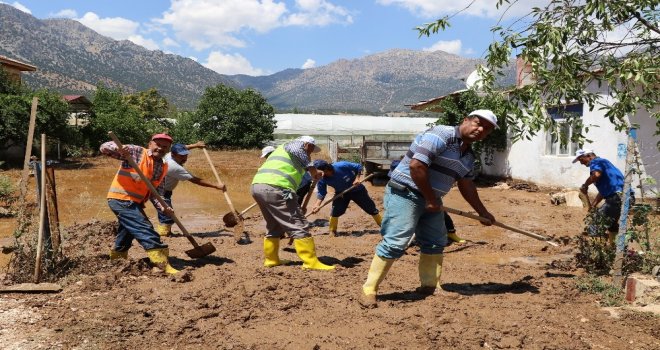 Antalyanın Elmalı ilçesinde sağanak sonrası meydana gelen sel, bir çok ile yaklaşık 450 dönüm tarım arazisinde zarara yol açtı. Ev ve sera sahipleri sabah erken saatlerden itibaren temizlik çalışmalarına başladı.