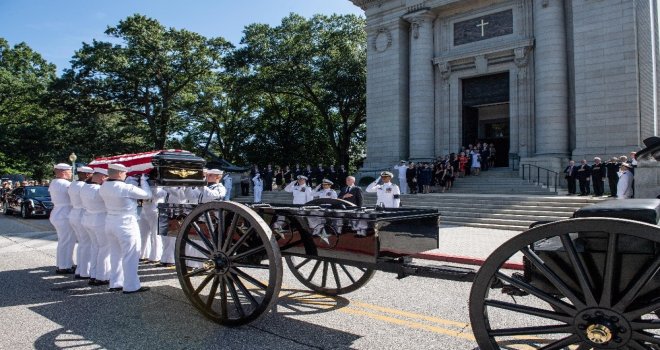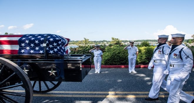 McCain için Cumartesi günü de başkent Washingtonda bulunan Ulusal Katedralde cenaze töreni düzenlenmişti, eski başkanlardan Barack Obama, George W. Bush ve Bill Clinton birer konuşma yapmıştı. Washingtondaki törene, üst düzeyde devlet erkanı katılmış ve yakınları tarafından gözyaşlarıyla veda edilmişti.