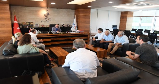 Konyaaltı Belediye Başkanı Muhittin Böcek, Birleşik Kamu İş Sendikası Konfederasyonu Genel Başkanı ve Tüm Yerel Sen Genel Başkanını ağırladı.