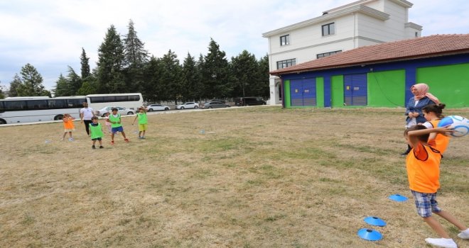 Serdivan Çocuk Akademisi Yaz Okullarında çocuklar, geleneksel sokak oyunlarının tadını çıkarıyor.