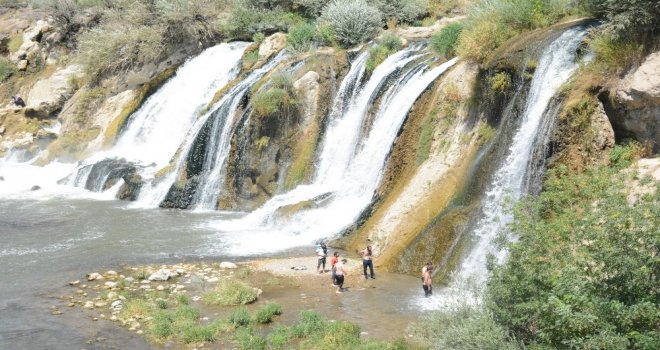 Vanın Muradiye Şelalesi, sıcak havadan dolayı serinlemek isteyenlerin akınına uğruyor.