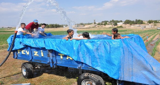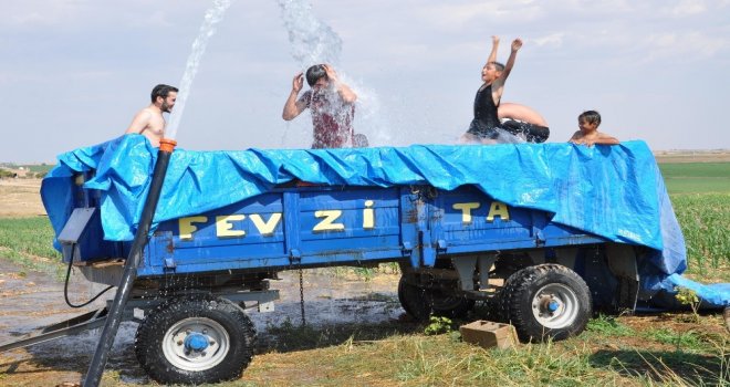 Sıcaktan Bulanan Çiftçiler Traktör Römorkunu Havuza Çevirdi