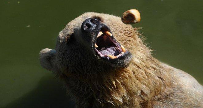 Sıcak havalara dayanamayan hayvanlar, kendileri için hazırlanan buzlu meyveleri yiyerek serinliyor. Aşırı sıcaklar insanlar kadar vatandaşları da bunaltıyor. Hissedilen sıcaklığın 40 dereceyi bulduğu Bursada, boz ayılar, bakıcılarının hazırladığı dondurulmuş meyve kokteylleriyle serinliyor. Kendilerine atılan buzlu meyveleri afiyetle yiyen boz ayıların bakıcıların talimatına harfiyen uyması dikkatlerden kaçmadı.