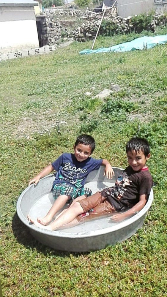 Ardahan Merkeze bağlı Halilefendi mahallesinde yaşları 10 olan ikiz kardeşler çareyi evlerinin önündeki leğene girmekte buldu.