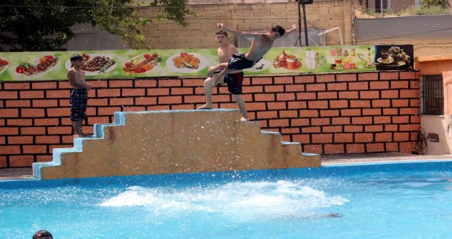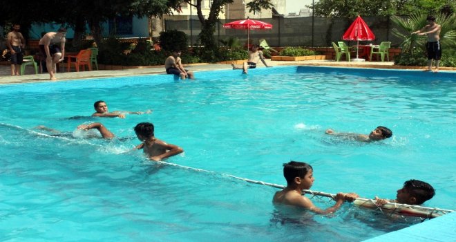 Sıcaktan Bunalan Türk Ve Suriyeli Gençler Havuzda Yüzerek Serinliyor