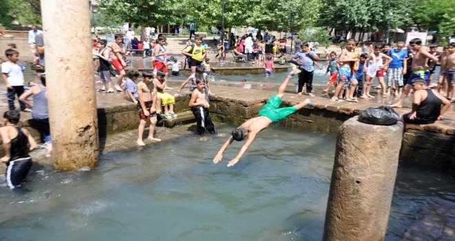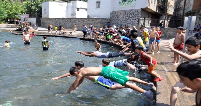 Diyarbakırda hava sıcaklığının mevsim normallerinin üzerinde seyretmesi vatandaşlara serinlemek için farklı yöntem arayışı başlattı. Sur ilçesine bağlı Anzele Parkında çocuklar süs havuzuna girerek serinlemeye çalıştı. Tehlike tabelasını dikkate almayan çocuklar hem havuza girip serinledi hem de güneşlenmenin keyfini çıkardı. Sıcaktan bunaldıkları için yüzmeye geldiklerini berten Umut Boran, “Yüzmeye geldik, havalar sıcak herkes eğlenmeye geldi. Havuzda yüzüp serinleyeceğiz. Burası tehlikeli değildir, tabelaları boşuna asmışlar, herkes yine de yüzüyor. Her gün geliyor 2 ile 3 saat arası serinleniyoruz” dedi.