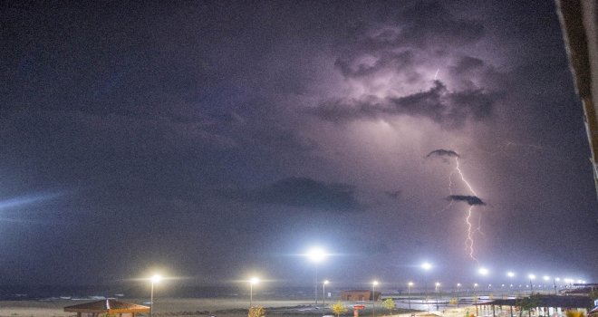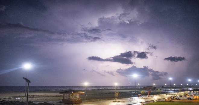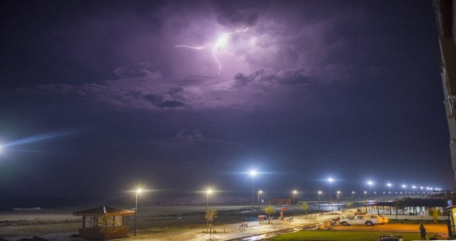 Dün gece yoğun bir şekilde Marmarayı etkisi altına alan ve dakikada ortalama 35 yıldırımın düştüğü yağışlar beraberinde bu fotoğrafları getirdi. Bursanın Karacabey ilçesine bağlı Yeniköyde İHA Foto Muhabiri Alper Tüydeş, gece boyu denize düşen yıldırımları görüntüledi.