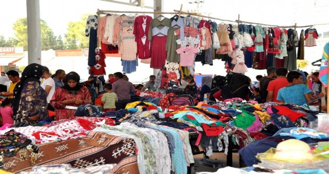 Şanlıurfanın sınır ilçesi olan Akçakalede yaklaşan Kurban Bayramı nedeniyle vatandaşı alış veriş heyecanı sardı. Vatandaşların, sergi açan esnafa akın etmesi alışverişe canlılık getirdi.