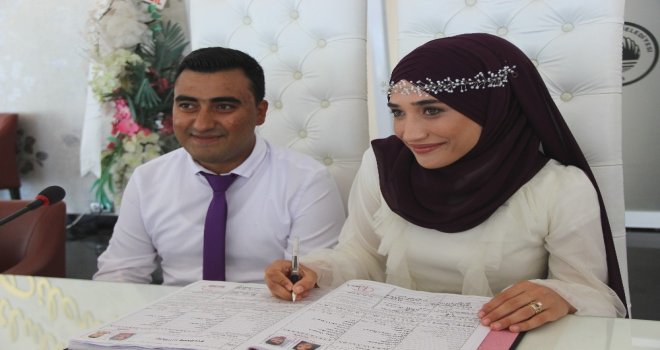 İskenderun Belediyesi Evlendirme Dairesinde Belediye Başkanı Seyfi Dingilin kıydığı nikahta 8 yıl sonra birbirlerine kavuşan çiftin mutluluğu görülmeye değerdi. Başkan Seyfi Dingil genç çiftin nikahını kıyarak bir ömür boyu mutluluklar diledi ve fincan takımı hediye etti.