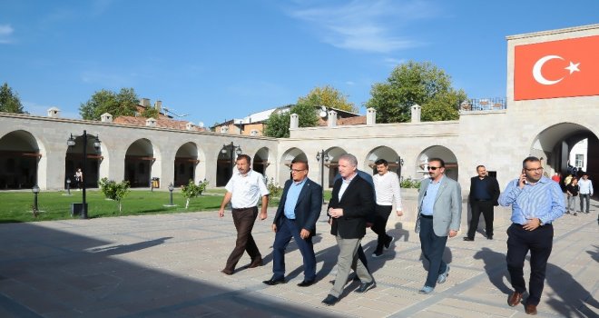 Evkur Yeni Malatyatyaspor- Demir Grup Sivasspor maçını izlemek için Malatyaya gelen Sivas Valisi Davut Gül ve Sivas Cumhuriyet Başsavcısı Murat İrcal, burada Battalgazi Belediye Başkanı Selahattin Gürkanı ziyaret etti. Başkan Gürkan, Vali Gül ve Başsavcı İcral ile birlikte Battalgazi Belediyesi fuaye alanında bulunan ve yapılan hizmetlerin maketlerini gezerek, yapılan hizmetler ile ilgili bilgiler verdi. Vali Gül, daha sonra Battalgazi Belediye Başkanı Selahattin Gürkan ile birlikte Eskimalatyaya geçerek Silahtar Mustafa Paşa Kervansarayı ve Ulu Cami başta olmak üzere tarihi mekanları gezdi. Burada konuşan Sivas Valisi Davut Gül, “Hem Malatyayı hem de Battalgaziyi çok beğendik. Bu tür eserlerin restore edilerek gelecek nesillere ulaşmasını sağlamak, yapılan görevlerin içerisinde en kıymetlisidir. Burayı gezerken de o tarihi dokunun aynı şekilde muhafaza edildiğini gördüğümüzde çok mutlu olduk. Ben emeği geçen belediye başkanımız olmak üzere tüm ekibine teşekkür ediyorum. Malatyaya gelenlerin mutlaka görmesi gereken bir eser. Bizimde buraya geliş amaçlarımızdan en önemlisi bu tarihi Silahtar Mustafa Paşa Kervansarayı görmekti. Sivas Cumhuriyet Başsavcımız ile buraya tarihi mekanları ziyaret etmek için geldik” ifadelerini kullandı.