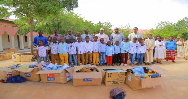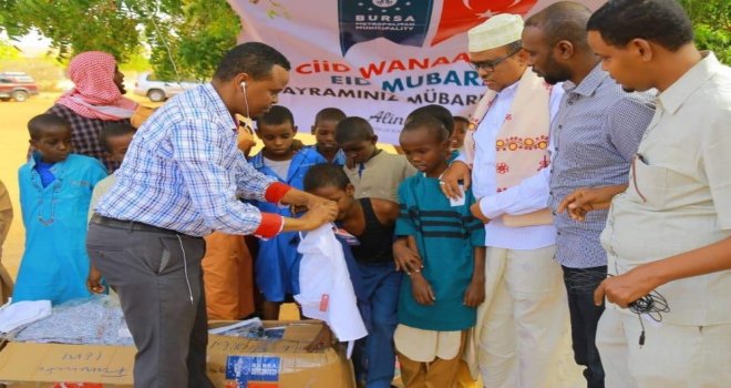 Bursa Büyükşehir Belediyesinin desteğiyle, Bursada hazırlanan bayramlık kıyafetler, Somalili yetim çocuklara hediye edildi.