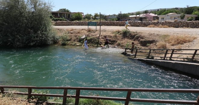 Sıcakların mevsim normallerinin üzerinde seyrettiği bölgede çocuklar, evlerinin önünden geçen sulama kanalına girerek serinlemeye çalışıyor. Etrafında çitlerin bulunmadığı ve sadece ‘Sulama kanalına girmek tehlikeli ve yasaktır ibaresinin yer aldığı kanala giren çocuklar, kendi yöntemleri ile yaptıkları can simitleri ile tehlikeye dalıyor. Pet şişeleri bellerine dolayıp suya giren çocuklar ölüme davetiye çıkarıyor.