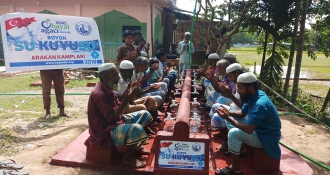 Hayat Ağacı Derneğinin, hayır sahiplerinin bağışları ile Arakandaki mazlumlara yardımcı olmak amacıyla planladığı yardım kapsamında, küçük su kuyusu, bambu ev ve banyolar tamamlandı. Arakanlı Müslümanlar, Hayat Ağacı Derneğine katkı sağlayan Sivaslı hayır sahiplerine dua ederek, yapımı tamamlanan su kuyusu, bambu ev ve banyoları kullanmaya başladı.