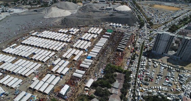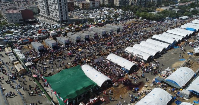 Sultangazideki Kurban Satış ve Kesim Merkezi bayramın birinci günü doldu taştı. Kurbanlarını kesmek için alana gelen vatandaşların oluşturduğu yoğunluk havadan görüntülendi.
