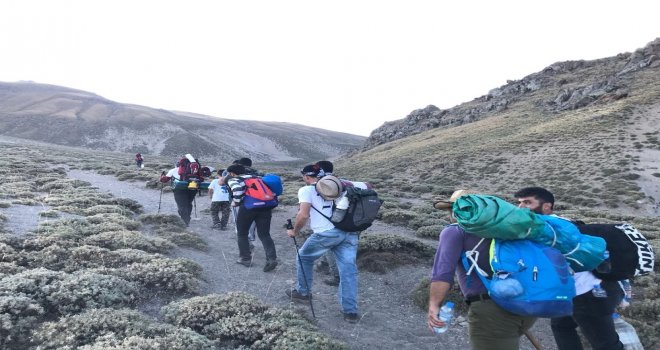 Bu yıl üçüncü kez Türkiyenin en yüksek üçüncü dağı olan 4 bin 58 metre yüksekliğindeki Süphan Dağına tırmanan 23 kişilik gönüllü ekip, zorlu tırmanışın ardından karla kaplı zirveye çıktı. Tırmanış sırasında dağın zirvesinde 23 Nisan 1959 yılında düşen İngiliz uçağının motor ve parçalarını fark etti. Uçak parçalarına rastlayan gönüllü dernek üyeleri, ellerindeki telefonlara sarılarak uçak parçalarını çekti.