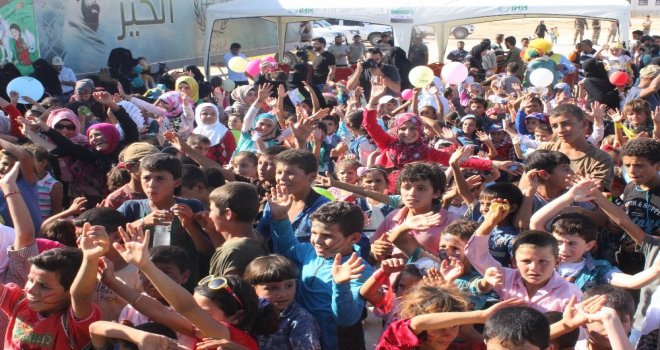 İHH İnsani Yardım Vakfı tarafından Suriyenin Halep kentine bağlı Azez ilçesi Siccu Kasabasında Kurban Bayramı öncesi oyuncak şenliği düzenlendi.