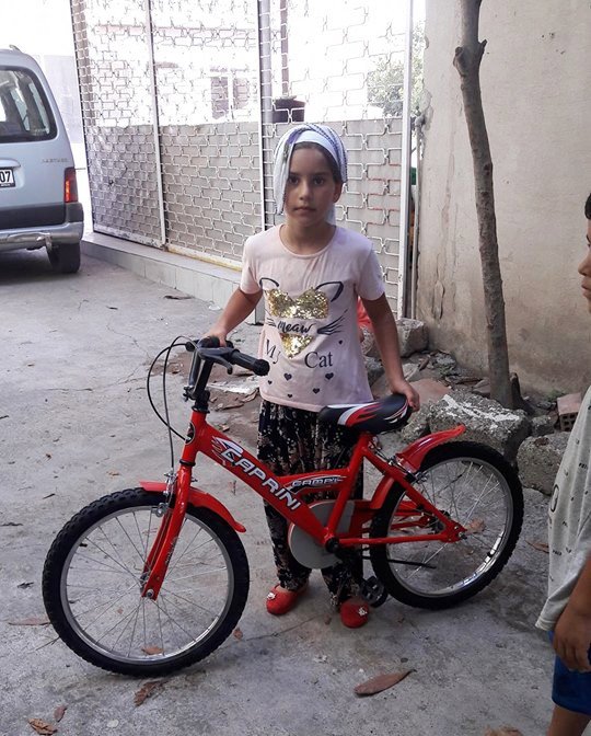Antalyanın Aksu İlçesinde bir mahallede camide düzenlenen yaz Kuran-ı Kerim Kursunda birinci olan kız öğrenciye ve babasını Suriyede kaybeden öğrenciye hayırseverlerin desteği ile bisiklet hediye edildi.