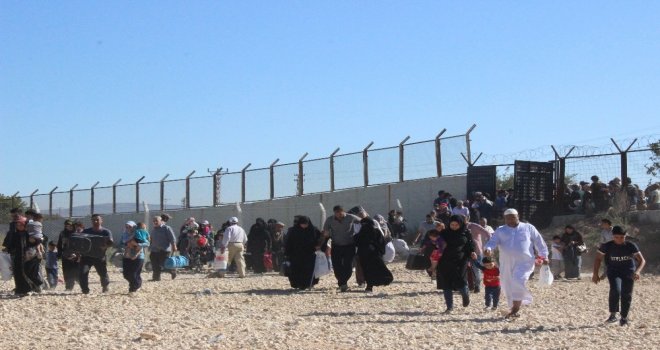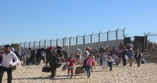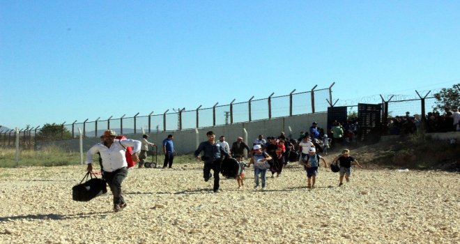 Kurban Bayramını ülkelerinde geçirmek isteyen yüzlerce Suriyeli işlem yapılacak alanın açılmasıyla birlikte maraton koşar gibi metrelerce depar atarak, ülkelerine giderken, aynı anda koşan yüzlerce kişi, Türkiye-Suriye sınırında ilginç görüntüler oluşturuyor.