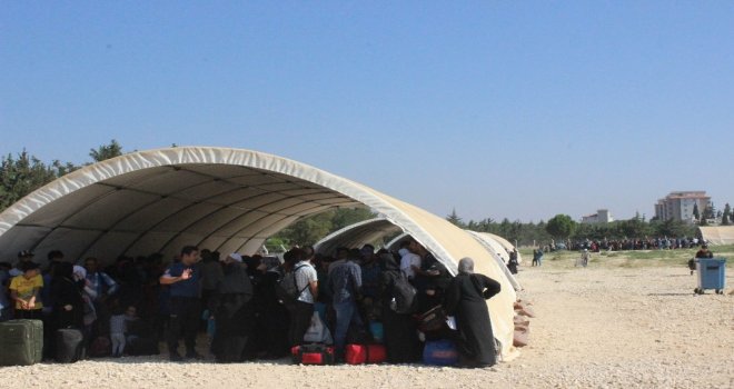 Jandarma ekipleri, Suriyelileri sıraya koymakta zorluk çekerken, Suriyeliler, bir an önce giriş kapısından gönderme alanına girmek isteyince izdiham yaşandı. Jandarma ve polis ekipleri, yaşlıları ve hamile ve çocukların geçişinde öncelik tanıdı.
