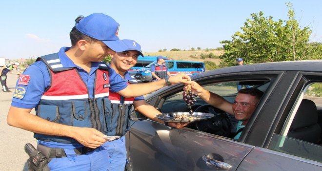 Manisanın Kula ilçesinde jandarma ekipleri, trafik denetimi kapsamında durdurdukları sürücülerin Kurban Bayramını kutlayarak, şeker ve kolonya ikram etti.