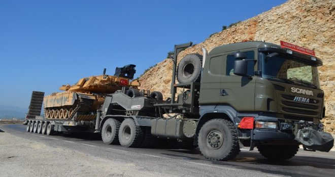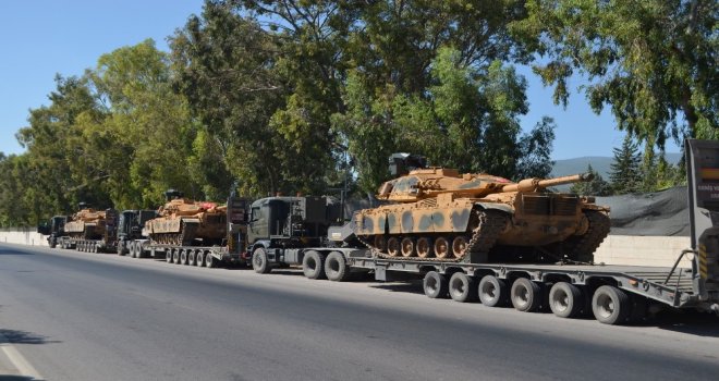 Türk Silahlı Kuvvetlerinin (TSK) Hatayda sınır noktalarında görevli birliklere takviye M-60 T tanklarının sevkiyatı sürüyor.