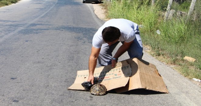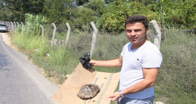 Kurban Bayramının ardından misafirlerini ağırlamaya devam eden Antalyada bir tatilci, karşıdan karşıya geçmeye çalışan kaplumbağayı arabasından inerek elleri ile alıp karşı tarafa bıraktı. Bir araç tarafından küçük darbe alan kaplumbağa son anda kurtarıldı.