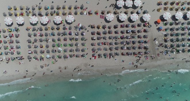 9 günlük Kurban Bayramı tatili, yaz ayların tatilci akınına uğrayan İzmir Çeşmeyi doldurdu. Yurt içi ve yurt dışından gelen turistlerin yanı sıra İzmirli vatandaşlar da tatil için Çeşmeyi tercih etti. Oteller ve pansiyonlarda yüzde 100 doluluğa ulaşılırken, günü birlik tatilcilerin adresi de Çeşme oldu. Ilıcadaki halk plajında drone ile yapılan çekimler ise renkli bir görüntü oluşturdu.