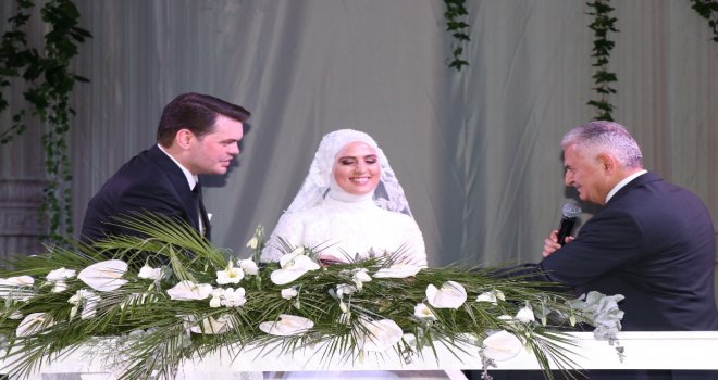 Erenler ilçesindeki bir düğün salonunda gerçekleştirilen nikah töreninde çiftin nikah şahitliğini ise TBMM Başkanı Yıldırım ve Bakan Soylu yaptı. Yıldırım ve Soylu, nikahın kıyılmasının ardından genç çifti tebrik etti, hatıra fotoğrafı çektirdi.