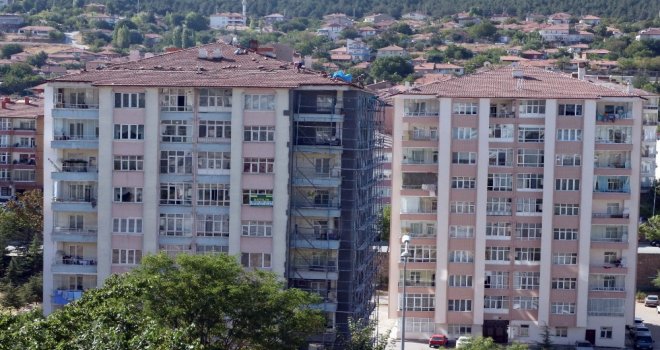 Yozgata 10 katlı bir apartmanın çatısındaki kiremitleri onaran işçilerin hiçbir güvenlik önlemi almadan çalışmaları dikkat çekti.