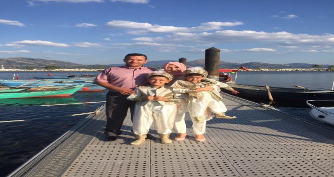 Ispartanın Eğirdir İlçesinde Remziye ve Kerim Dündarın çocukları Eray ile Erenin sünnet gezisi balıkçı tekneleriyle yapıldı.